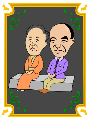 ご夫婦の読み方は「ハトリ・フミヨ」と「ハトリ・モトヒコ」。2015年放映のNHK大河ドラマ「花燃ゆ」にかこつけ展開したヤギカフェ「バナ燃ゆ」シリーズ(バナナ素材商品)の宣伝ため登場したキャラクター。ヤギカフェの商品開発に親身になってアドバイスをくれる地元前橋愛に溢れる仲良し夫婦。